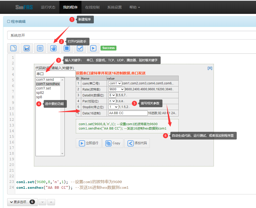 5. 您可用公用中控编程调试好代码,远程导出程序到电脑,或者上传至代码市场,供日后使用.