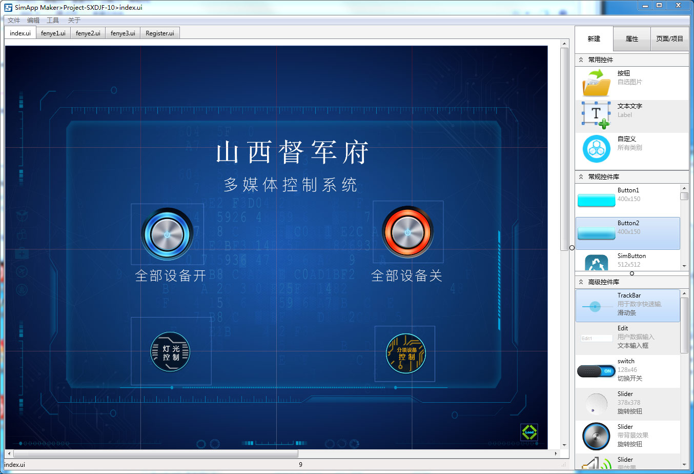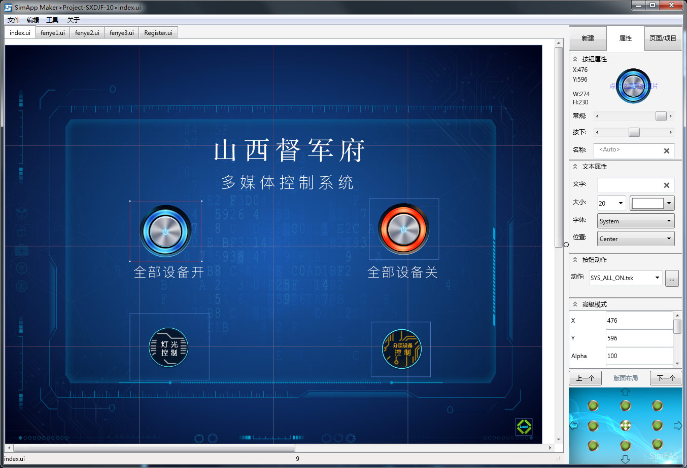 多页面切换 半透明 不规则按钮 旋转角度 双向通讯